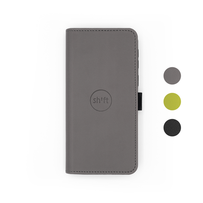 Schutzhülle aus hochwertigem Apfelleder mit Magnetverschluss für dein SHIFTphone 8. Sie bietet eleganten Rundumschutz, praktische Kartenfächer und einen integrierten Aufstellmechanismus – gefertigt aus einem nachhaltigen Material mit besonderer Haptik. Erhältlich in den Farben gravel grey, lime green und classy black.